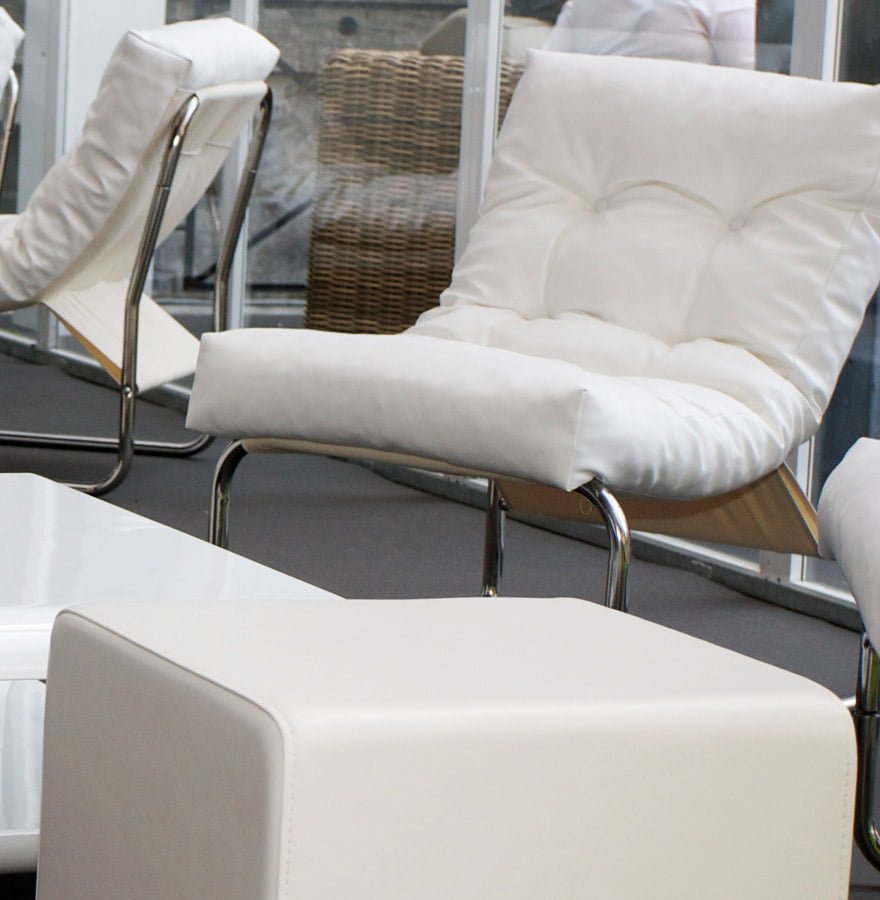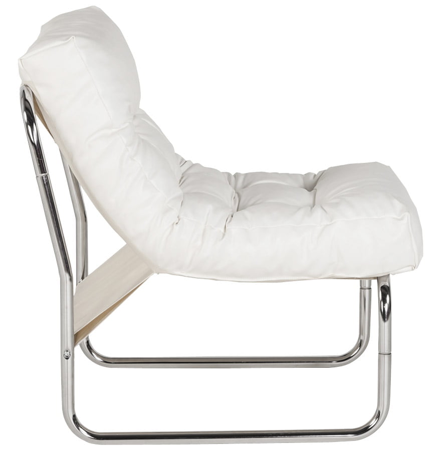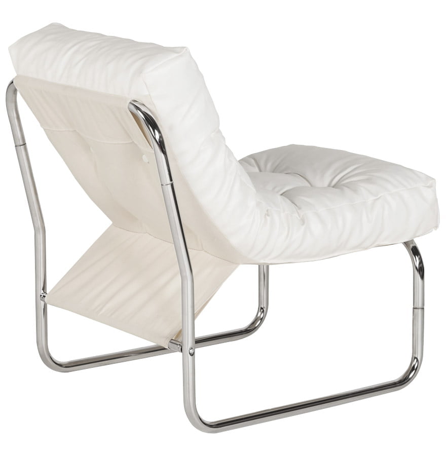 De loungefauteuil “BOUDOIR” biedt een ongeëvenaard niveau van comfort. De zitting uit imitatieleer van goede kwaliteit met een stevige vulling is bevestigd op een mooie, lichte structuur van verchroomd metaal. Deze fauteuil past bij alle interieurstijlen.